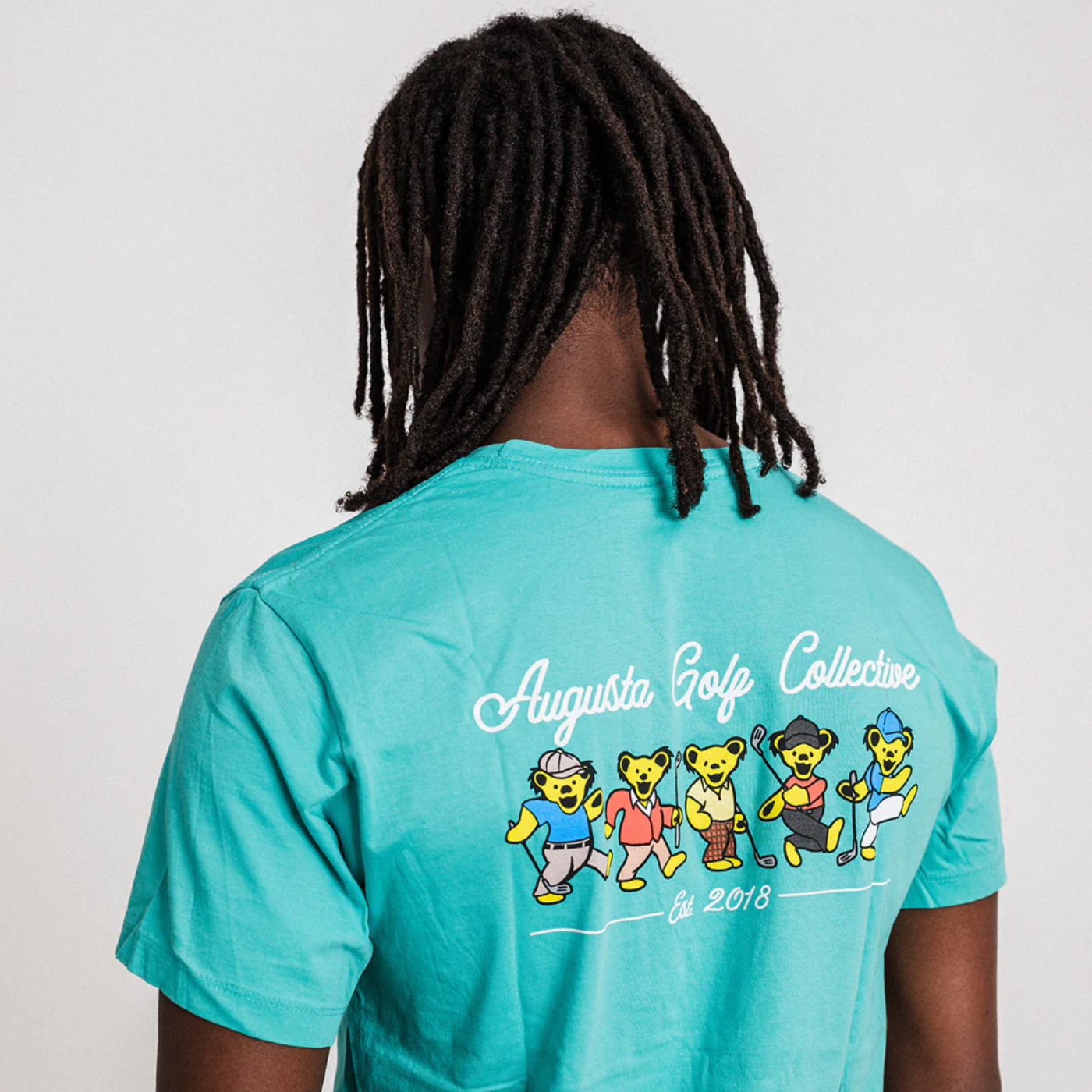 Augusta Golf Collective's mashup tee with bears decked in the beloved golf champs' winning attire!