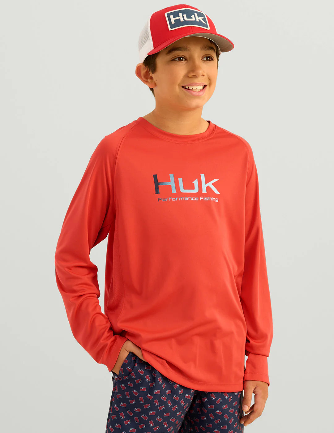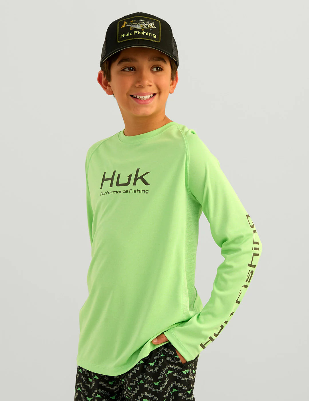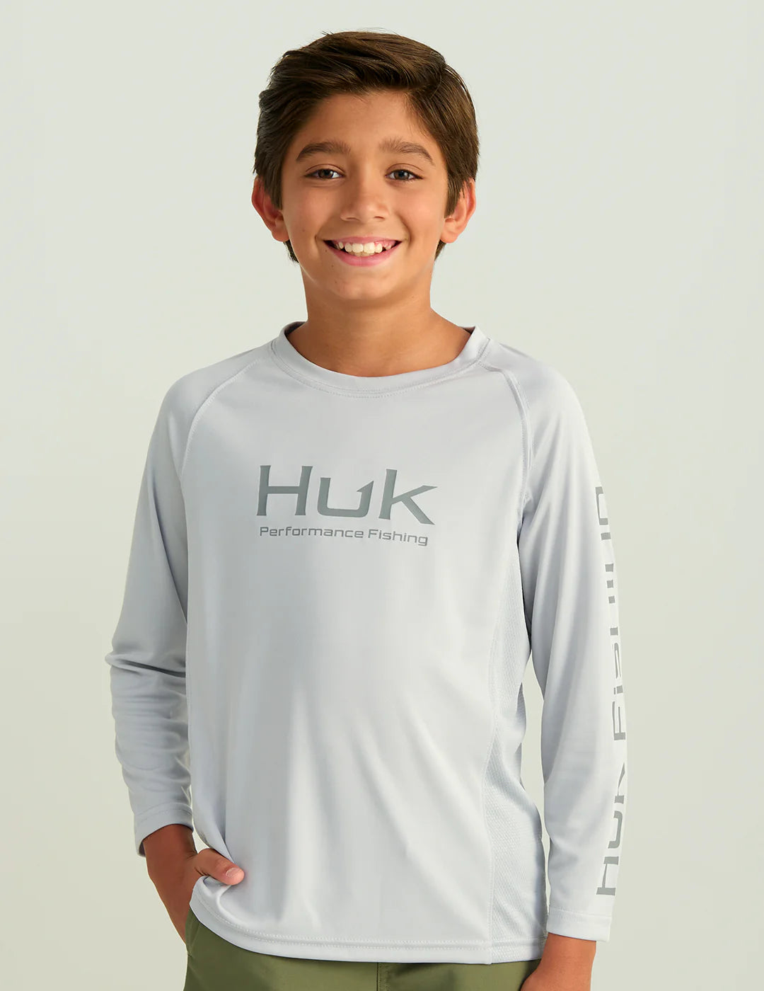The Huk Kid's Pursuit Solid is a lightweight, breathable performance garment for young anglers. With a 50+ UPF rating, this 100% polyester shirt offers superior protection from the sun's harmful rays. The mesh sides increase ventilation and comfort, making it perfect for a day out on the water.