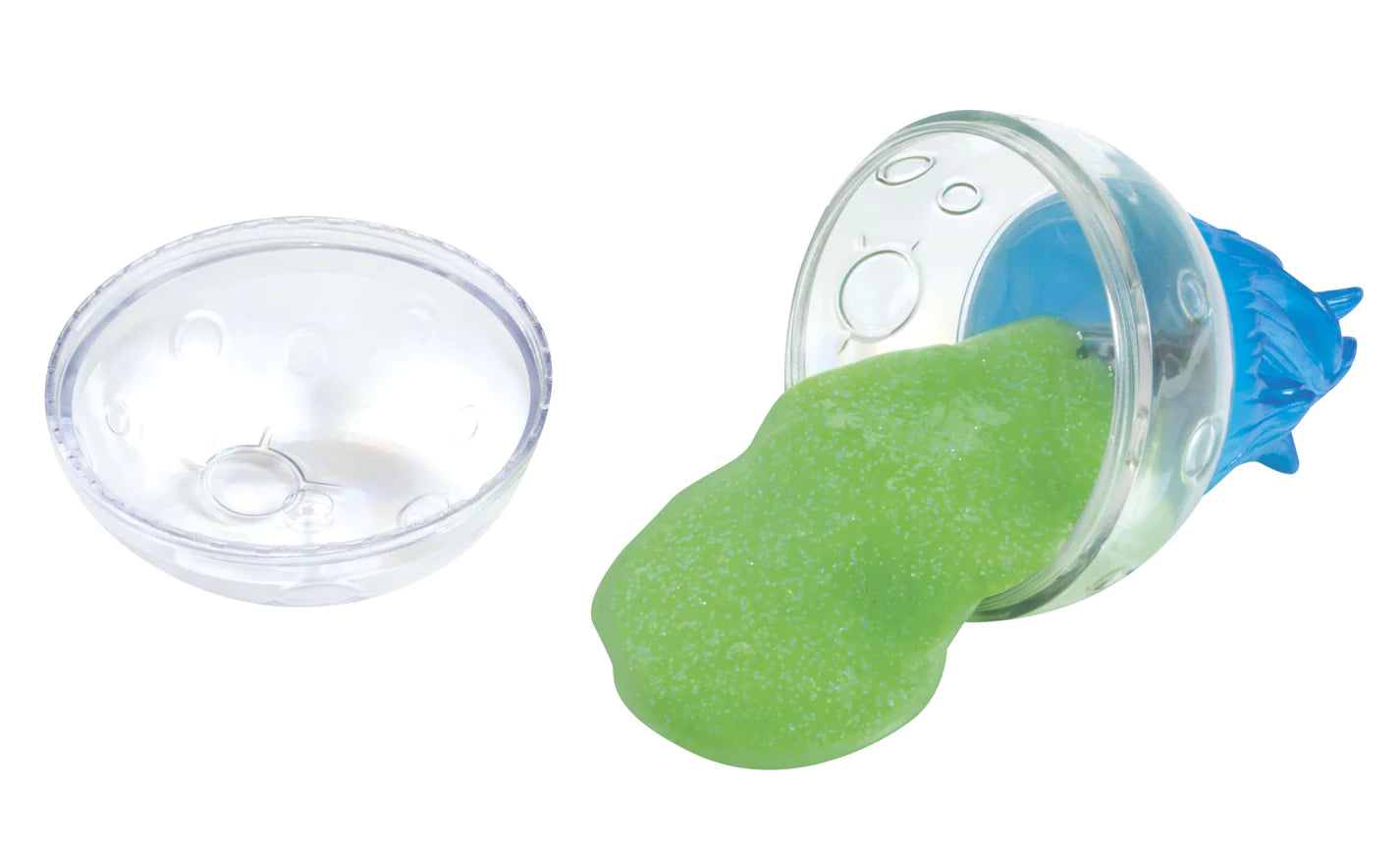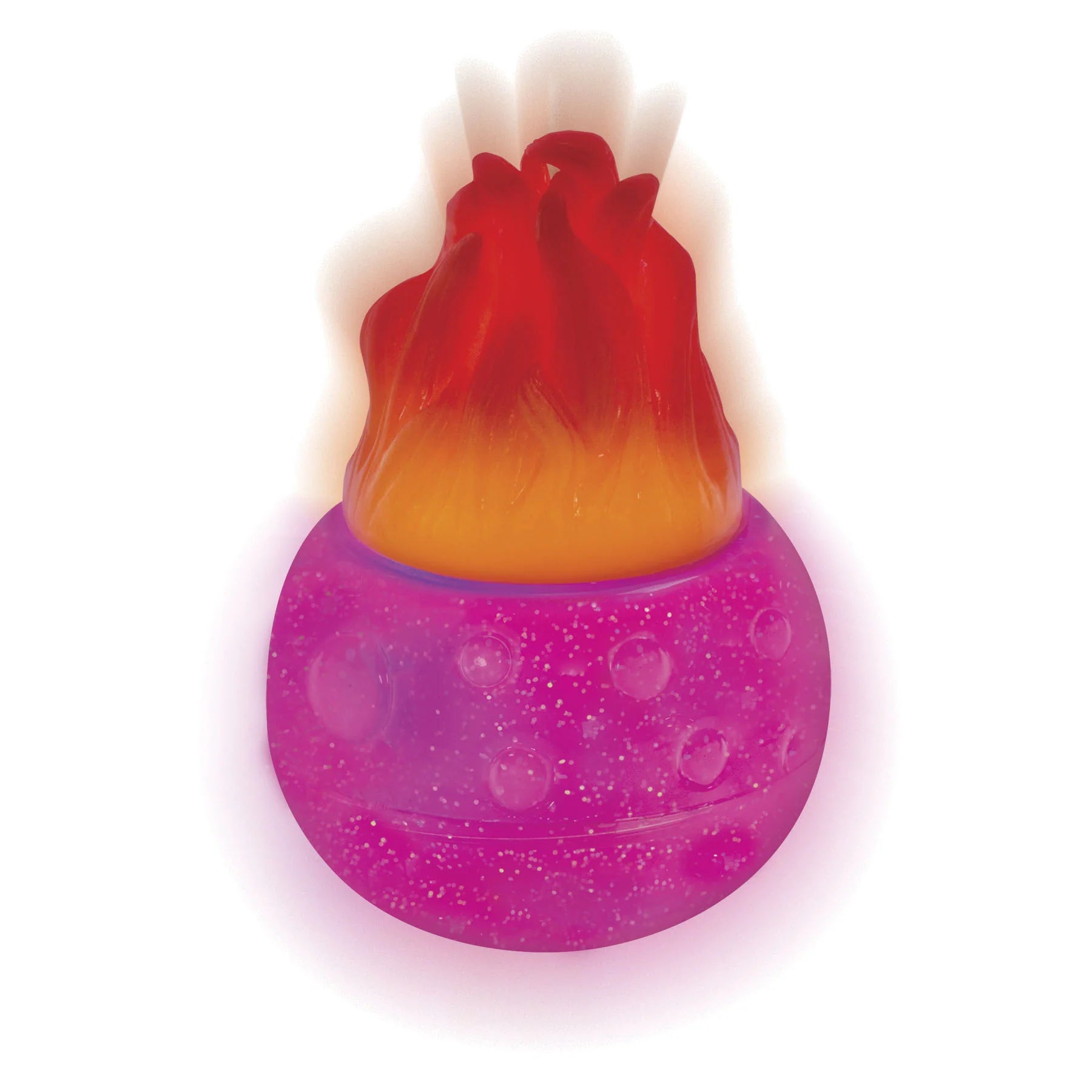 This one of a kind putty features a light-up asteroid ball with a flashing flame tail that comes in an assortment of colors. Inside, you'll find 1 ounce of multicolored slime with a shimmery, marbleized design. With non-replaceable batteries, the flame will light up and flash, making playtime even more exciting. Packaged in a space-themed blister packet, this clear plastic asteroid ball also comes apart in 2 halves for added fun.