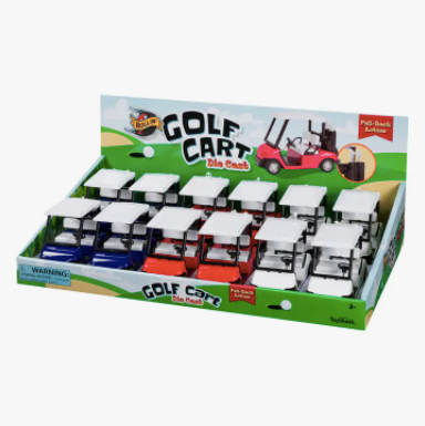 Don't let long putts get you down! Get your miniature golfing in order with Toysmith's Pull Back Golfcart Toy! It's the perfect way to practice your putting; just pull it back and watch it go! This toy comes in three different colors, so you can tee off in style! Fore!