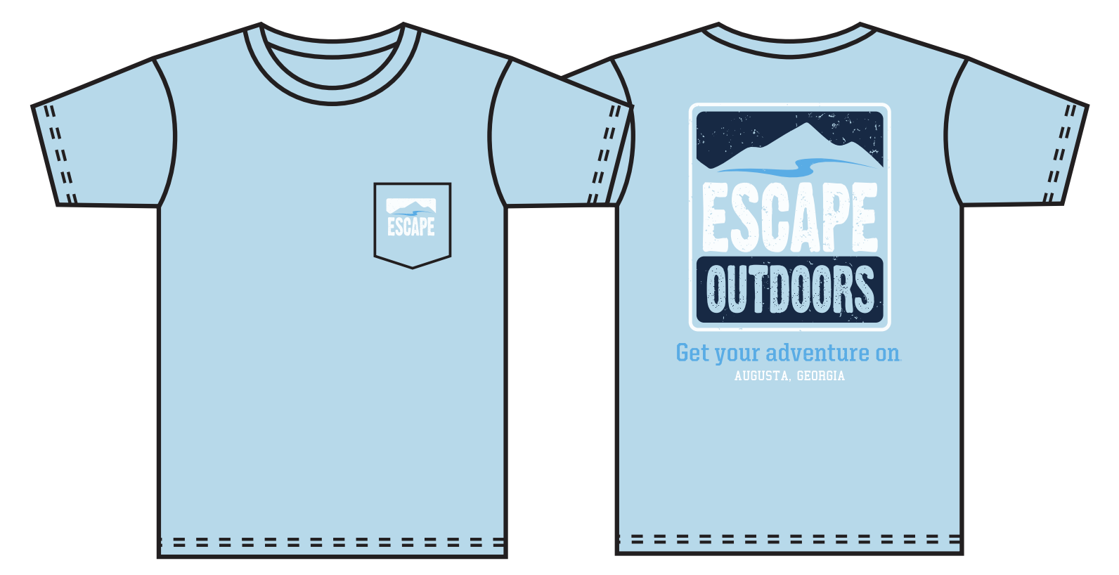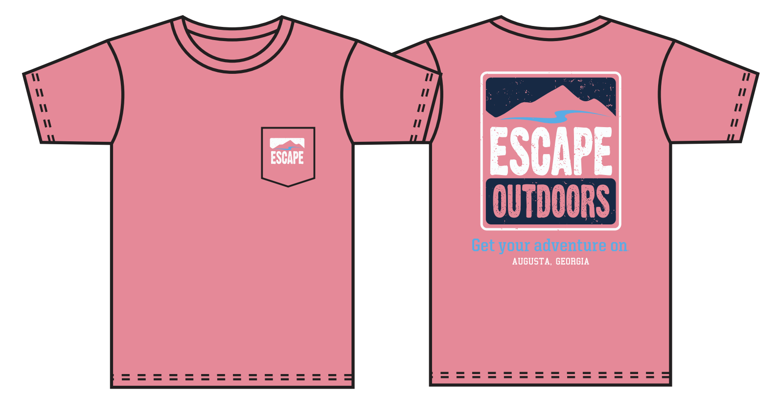 The classic white & navy logo Escape pocket tee is our own original brand swag! You can easily wear these tees over and over again - pair them with shorts, jeans, khakis, baggies, etc. With so many different colors and size you're sure to find a tee that you love! They are printed on a super comfy and soft Comfort Colors tee. Come check them out and rep Escape Outdoors!