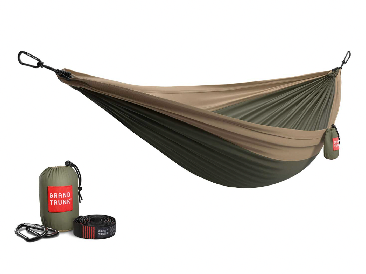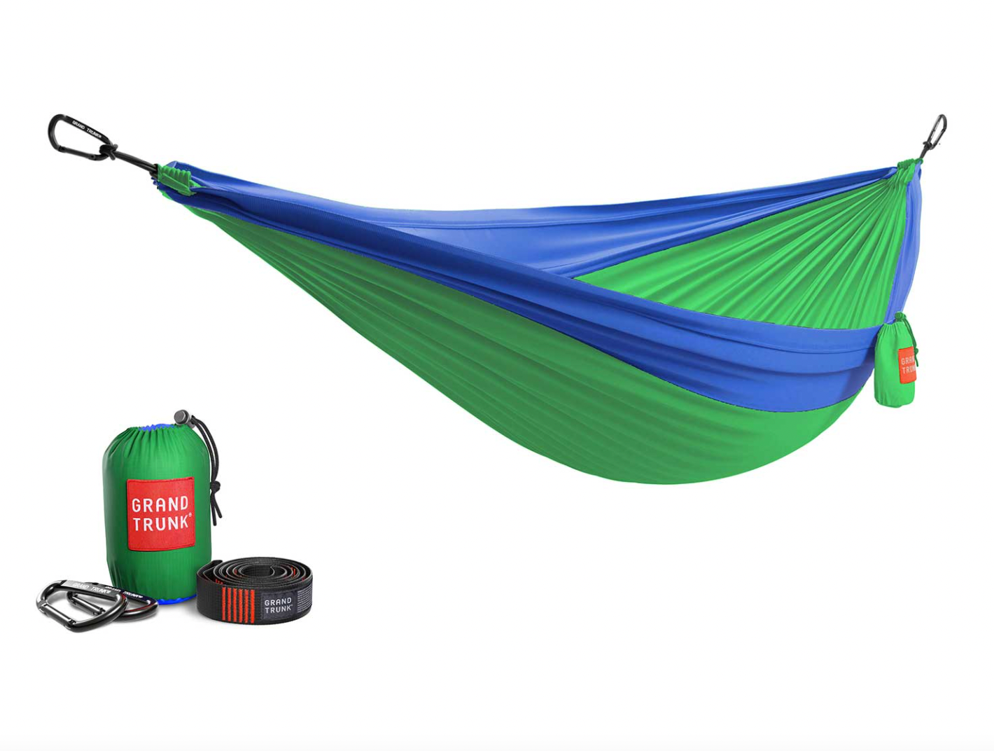 The packable two person hammock is perfect for all your adventures! Made to be soft, breathable and fast drying! Super quick and easy to set up. Coming with carabiners and five foot hammock straps!