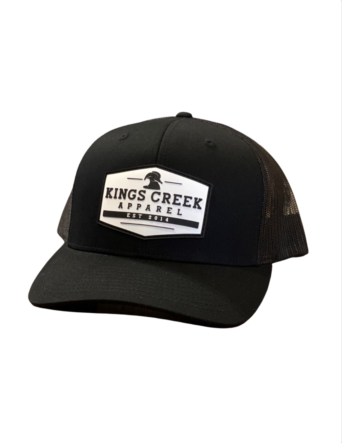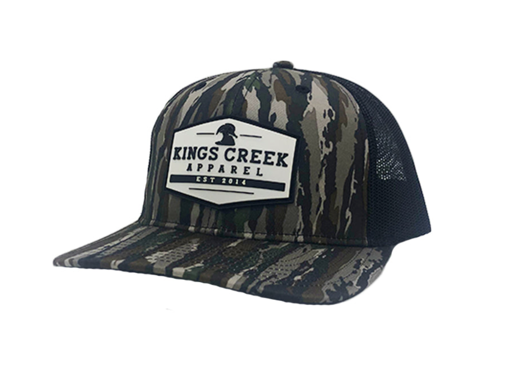 This Trucker hat is a Kings Creek Staple and a favorite of ours! This trucker features a mid profile, structured 5 panel crown, as well as an adjustable snapback. This selection features a rubber patch with the Kings Creek Logo in many great color combinations.