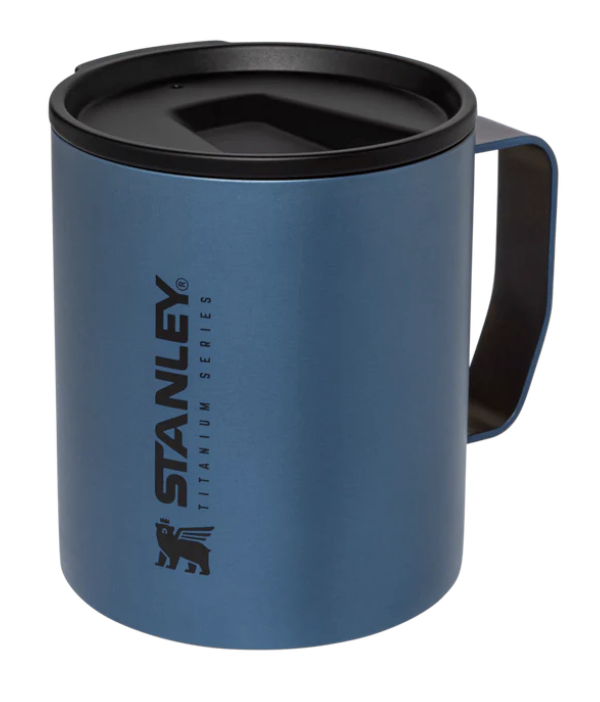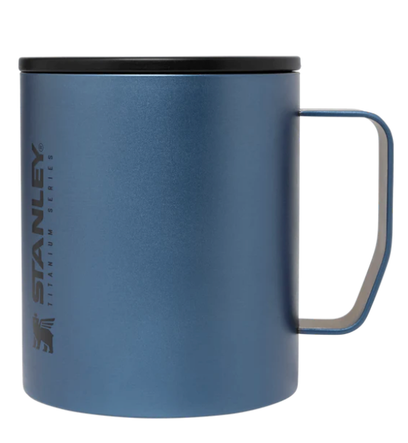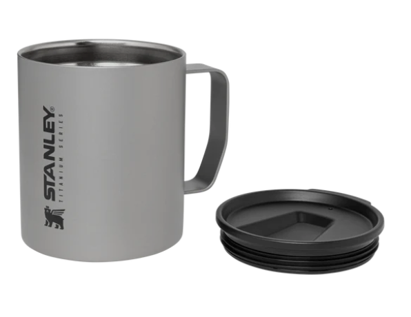 The Titanium Camp Mug holds up to 12oz of liquid and press-fit drink thru lid for easy sipping.