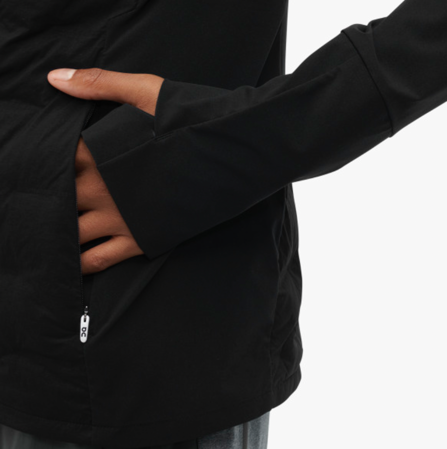 This multi-weather jacket from On Running features moisture-wicking materials and 4 way stretch fabric to keep you fresh and comfortable no matter the occasion! The outer fabric is treated with DWR coating to repel water and 100% recycled padding to keep you warm while also being environmentally conscious.