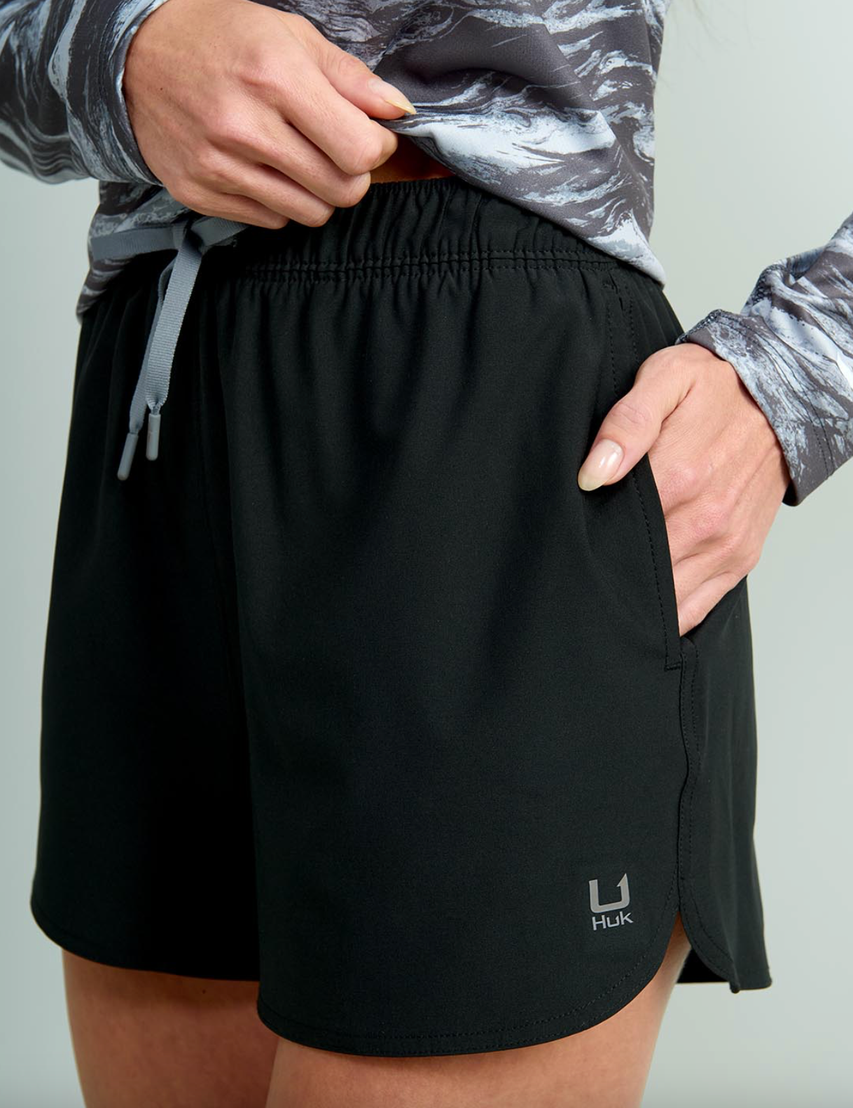 The Huk Women's Pursuit Volley Short offers maximum comfort and mobility with its 4-way stretch fabric. Enjoy the sun safely with built-in UPF protection and quick-dry technology. Perfect for both in and out of the water, with an adjustable waist and a classic volley fit.