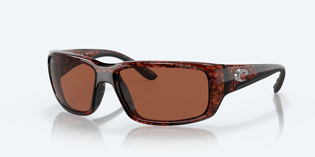 The Costa Fantail sunglasses are the smaller but no less mighty kin of the Blackfin. The best polarized sunglasses on the water, these men's performance sport fishing sunglasses with mirrored options are polarized, co-molded and are perfect for any Angler. These glasses are size M with a regular frame fit.