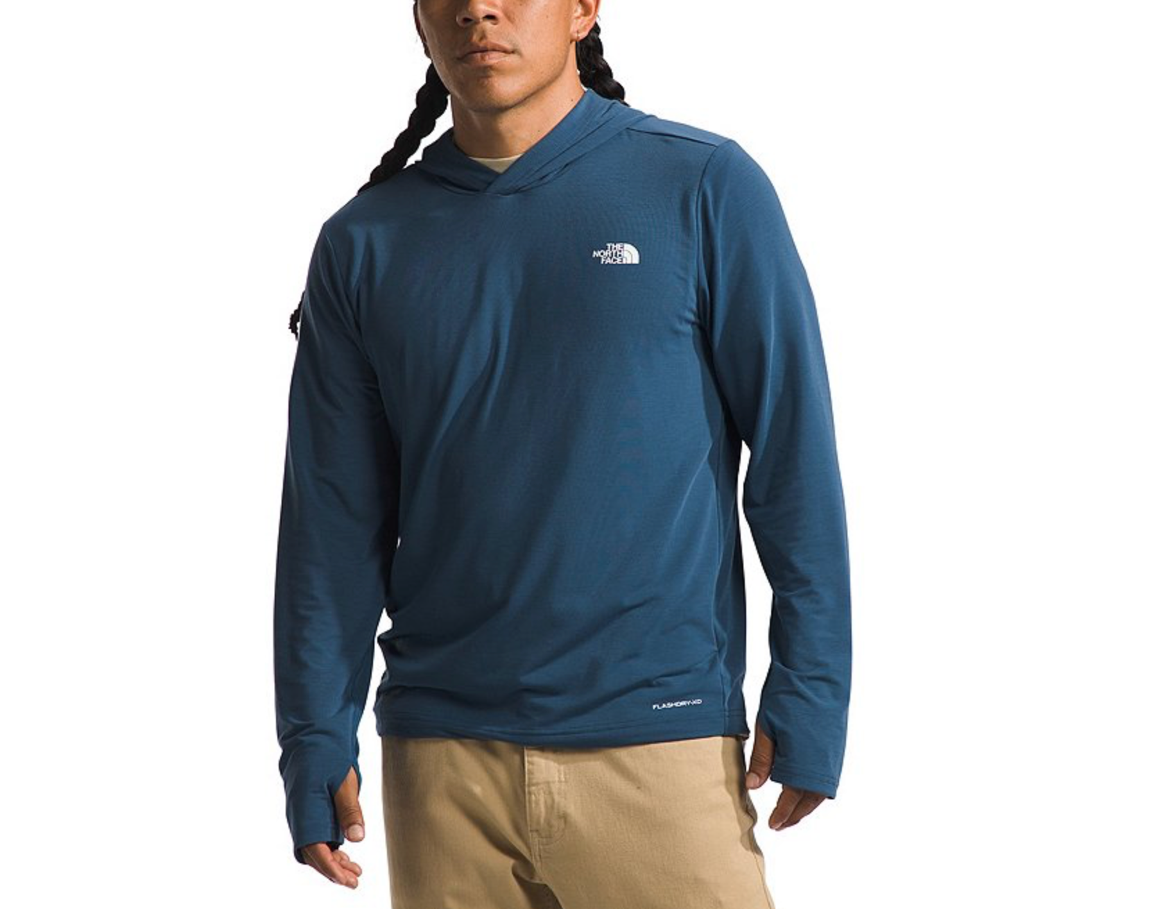 Stay protected from the sun while exploring in The North Face Men's Adventure Sun Hoodie. With a built-in hood and UPF 50+ sun protection, this sleek design offers both style and functionality. Made with breathable, quick-drying fabric, this hoodie is perfect for all your outdoor adventures.