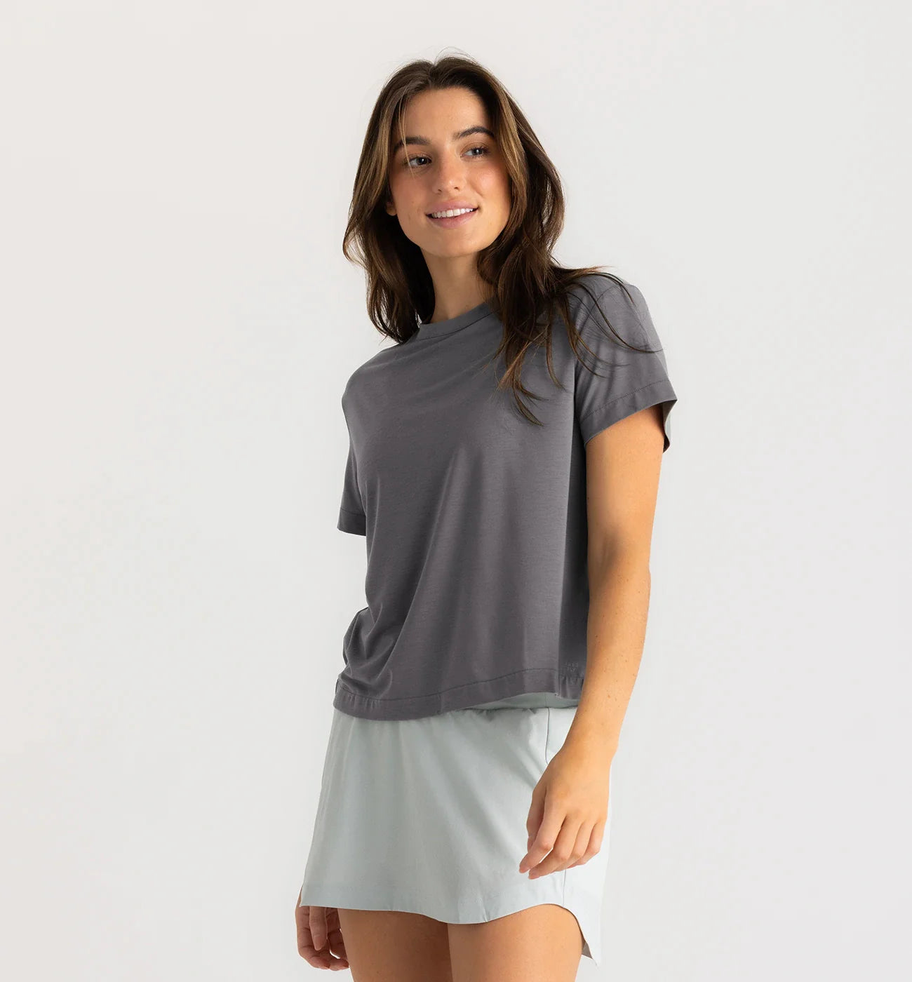 Conquer hot weather with our Women's Elevate Lightweight Tee. Made with ultra-lightweight TENCEL™ fabric, it offers fast-drying and durable performance. Four-way stretch and drirelease® technology provide breathability for ultimate comfort. Great for workouts or everyday wear, its boxy and cropped fit adds a sporty touch.