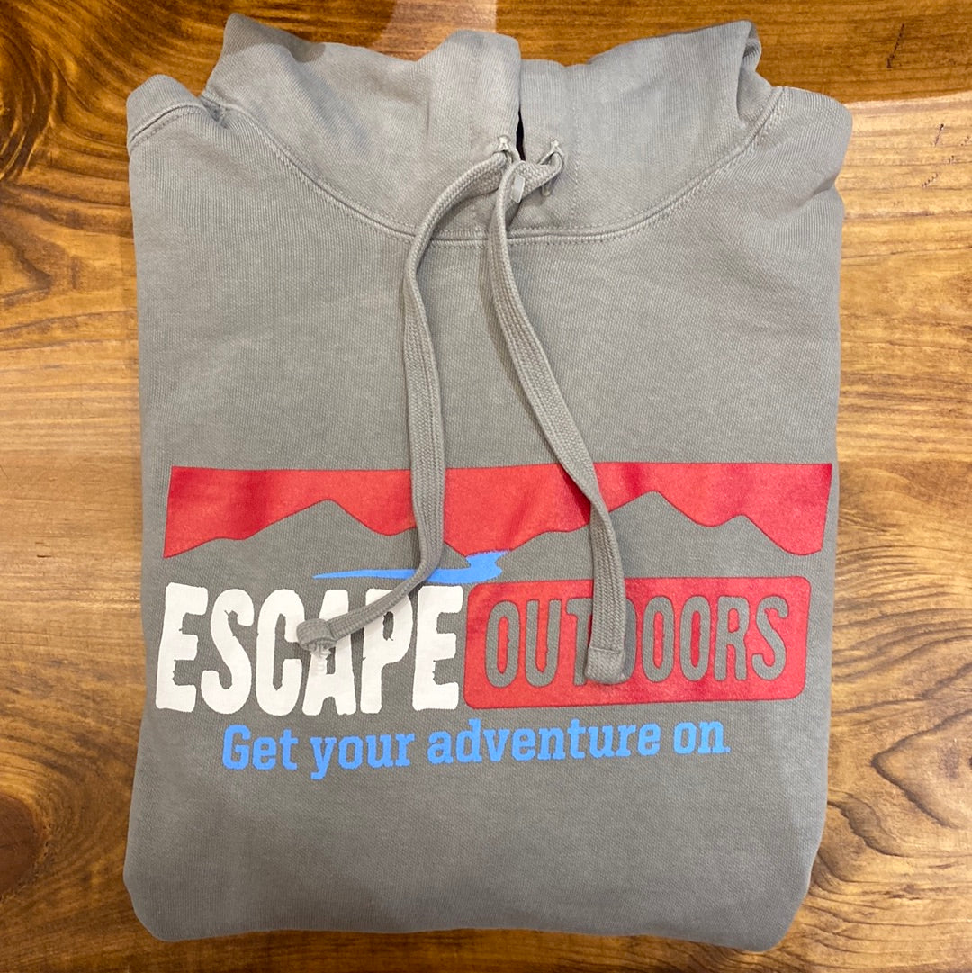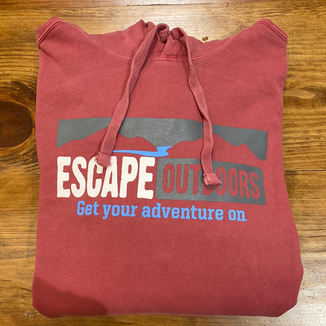 Our Escape Outdoors hoodie is the perfect piece to throw on and go! Our famous Escape hoodie is printed on a comfort colors hoodie. Look stylish and feel comfortable reaping your favorite small business.