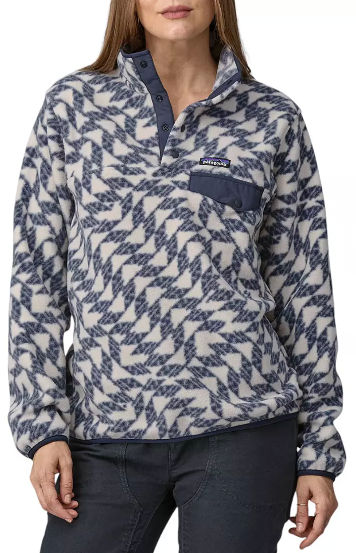The Women's Synchilla Snap-T fleece pullover made by Patagonia is the perfect everyday jacket to throw on. This pullover is made of a lightweight but still cozy recycled fleece material and a 3/4 snap allows for easy wear!