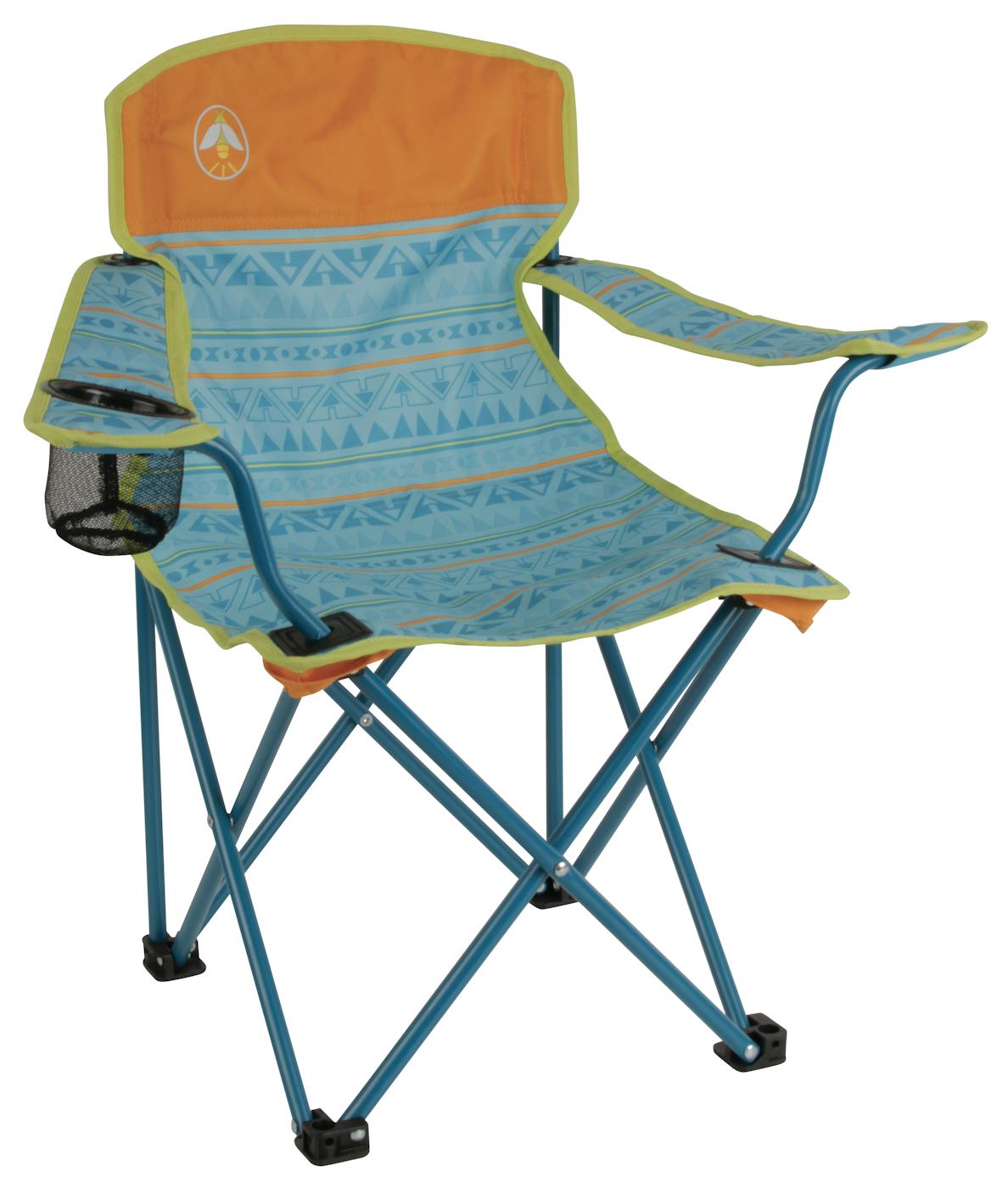 Take kid-sized comfort with you to the campsite, BBQ or picnic with a Coleman® Kids Quad Chair. Relaxing so much can make your kid thirsty, but with the mesh cup holder, they can keep a drink close at hand. A low seat helps resist tipping, and the frame locks to help prevent any accidental folding. When the fun is done, the chair easily folds up into a carry bag for easy transport and storage.