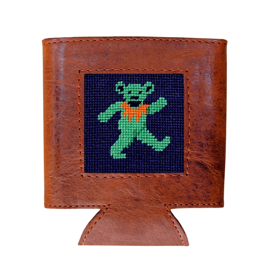 Get ready to party with our Dancing Bear Can Cooler! Hand-stitched with French cotton thread, our signature needlepoint design adorns the full grain Italian leather exterior, while the neoprene liner keeps your drink cool. Dress up your beverage in style and make a statement at any event. Cheers!