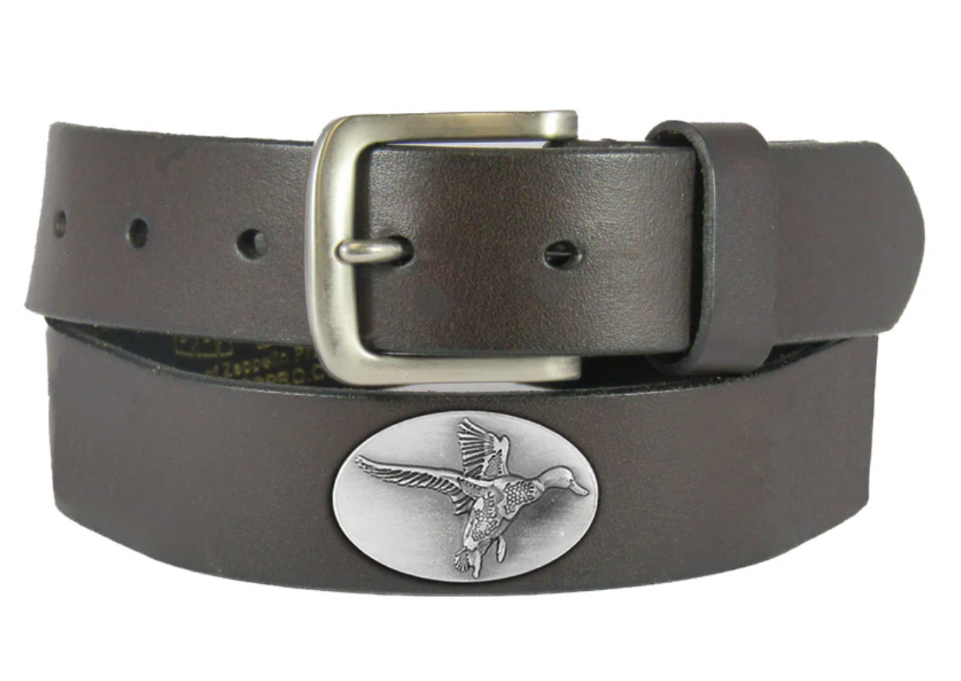 This Mallard Brown Leather Concho Belt by Zep-Pro is the perfect accessory for those who want to show their passion for nature and wildlife. Made from high-quality full grain leather with a pullup finish, this belt is both stylish and durable. With its unique Mallard design and metal logo, it's the perfect gift for any outdoor enthusiast. Add a touch of personal flair to any outfit with this one-of-a-kind belt.