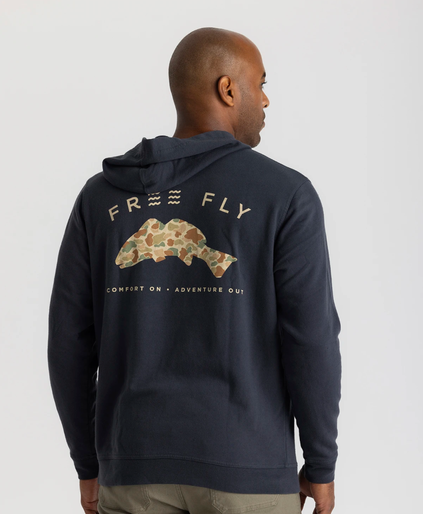 Regular price $34Stay warm and stylish in our Vintage Camo Redfish Fleece Hoodie by Free Fly Apparel. With its unique camo print and soft, cozy fleece material, this hoodie is perfect for any outdoor adventure. Feel confident and comfortable while showing off your love for nature and fishing.