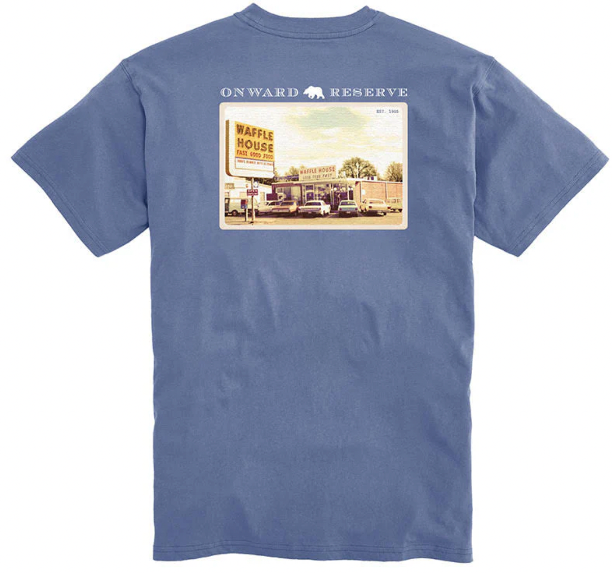 Experience the unique collaboration between Waffle House and Onward Reserve with our Postcard Tee. Inspired by the iconic restaurant chain and featuring a nostalgic postcard design, this tee is a must-have for any fan. Made with quality materials, it's the perfect addition to your casual wardrobe.